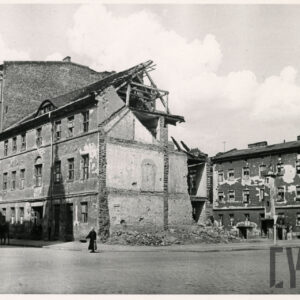 Zniszczona w czasie II wojny światowej kamieniczka przy ul. Garbary 26, za nią kamienica nr 28