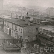 Zabudowania przy ul. Małe Garbary po zakończeniu II wojny światowej, widok na kamienice przy ul. Grochowe Łąki
