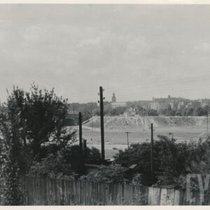 Dzieciniec Słońce (po lewej), Warta i mosty Marchlewskiego (dzisiaj Królowej Jadwigi) i św. Rocha oraz fragment wsi Rataje (po prawej) z lotu ptaka1960–1964