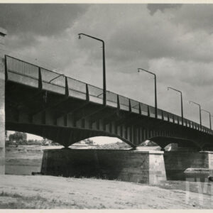 Most Marchlewskiego (dzisiaj Królowej Jadwigi) nad doliną Warty, w prześwicie przęsła mostu widoczne od lewej: gazownia na Grobli, katedra na Ostrowie Tumskim i most Rocha1960