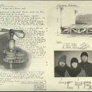 Odwrocie fotografii z opisem projektu (2 wersje) neonu "radia telewizory" na frontowej elewacji budynku przy ul. Armii Czerwonej 57 (obecnie ul. Święty Marcin) i zatwierdzenie projektu reklamy1965–1967