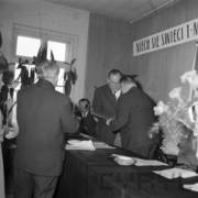 Delegacja rządowa z wicepremierem Eugeniuszem Szyrem na czele w pawilonie nr 2 w czasie X Targów Krajowych Jesień 1962