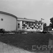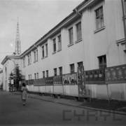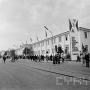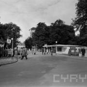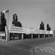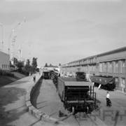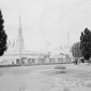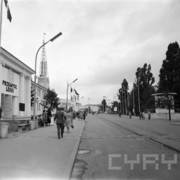 Droga przy pawilonie nr 12 w czasie X Targów Krajowych Jesień 1962, po lewej stronie widoczne pawilony nr 2 i 1