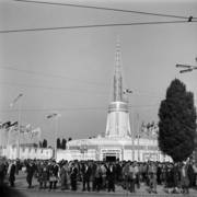Zwiedzanie Iglicy (pawilonu nr 11) w dniu otwarcia X Targów Krajowych Jesień 1962