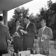 Spotkanie z wystawcami XXXI Międzynarodowych Targów Poznańskich, pierwszy od prawej dyrektor MTP Stefan Askanas