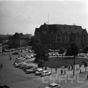 Parking przed Dworcem Zachodnim i głównym budynkiem poczty przy ul. Głogowskiej w czasie XXXI Międzynarodowych Targów Poznańskich