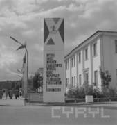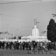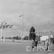 Plac masztowy przy głównym wejściu na teren MTP od strony mostu Dworcowego w czasie X Targów Krajowych Jesień 1962
