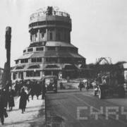 Zniszczona Wieża Górnośląska i główne wejście na teren Targów Poznańskich od strony ul. Głogowskiej w 1945 roku