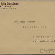 Koperta z kondolencjami przesłanymi rodzinie Feliksa Nowowiejskiego przez dyrektora Państwowej Szkoły Umuzykalnienia w Poznaniu Tadeusza Nowakowskiego po śmierci kompozytora