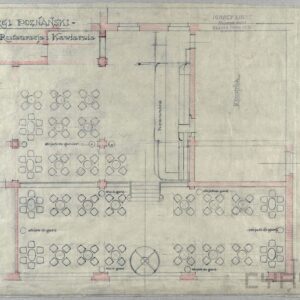 Rzut uwzględniający zmiany w projekcie restauracji "Belveder" znajdującej się w budynku administracyjnym MTP przy ul. Głogowskiej 14