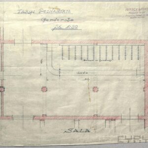 Projekt garderoby w jednym z pawilonów Targów Poznańskich, prawdopodobnie dla stoiska meblowego firmy Ignacego Linke