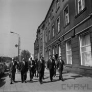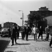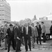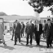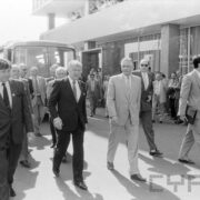 Delegacja rządowa z ministrem handlu zagranicznego Januszem Burakiewiczem przed pawilonem węgierskim w czasie otwarcia XXXVIII Międzynarodowych Targów Poznańskich08.06.1969
