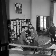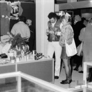 Delegacja rządowa z ministrem handlu zagranicznego Januszem Burakiewiczem (w pierwszym rzędzie drugi z lewej) ogląda ekspozycję opakowań amerykańskich w czasie otwarcia XXXVIII Międzynarodowych Targów Poznańskich08.06.1969