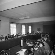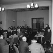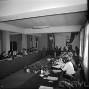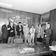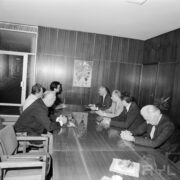 Prezes MTP Stanisław Laskowski, czwarty od prawej, przewodniczący spotkaniu roboczemu w czasie 61. Międzynarodowych Targach Poznańskich (?)11.06.1989–18.06.1989