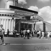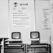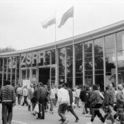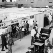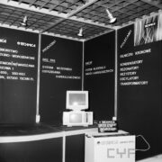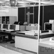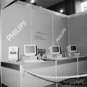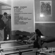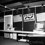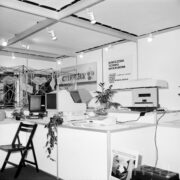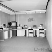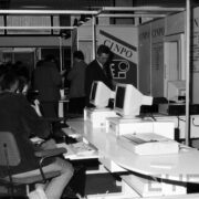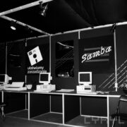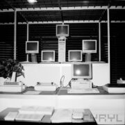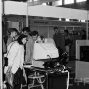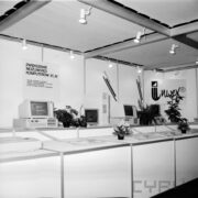 Stoisko japońskiej firmy Minolta (dzisiaj Konica Minolta), producenta m.in. kserokopiarek, w czasie targów branżowych Poligrafia'89 i Infosystem'8910.04.1989–14.04.1989
