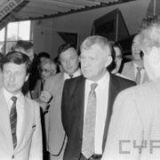 Premier Mieczysław Rakowski, prezydent Poznania Andrzej Wituski i minister Dominik Jastrzębski w czasie otwarcia 61. Międzynarodowych Targów Poznańskich11.06.1989–18.06.1989