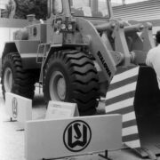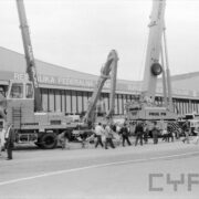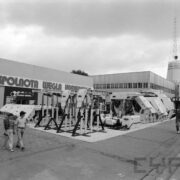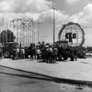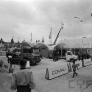 Ekspozycja plenerowa maszyn i pojazdów na placu Marka w czasie XXXVIII Międzynarodowych Targów Poznańskich, w głębi pawilony Szwajcarii i Szwecji08.06.1969–17.06.1969