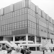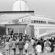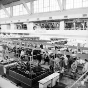 Pawilon elektroniki i elektrotechniki polskiego przemysłu ciężkiego (pawilon nr 11, tzw. Iglica), w czasie XXXIV Międzynarodowych Targów Poznańskich13.06.1965–27.06.1965