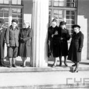 Matka arch. Bogdana Celichowskiego Stanisława (druga od prawej) i jego kuzynka Aleksandra Sowińska (pierwsza z prawej) w podcieniach Dworca Zachodniego w Poznaniu