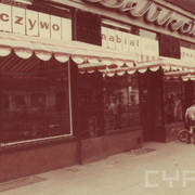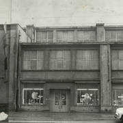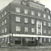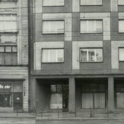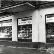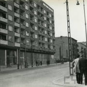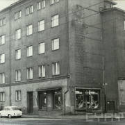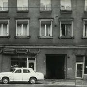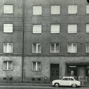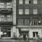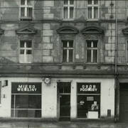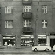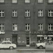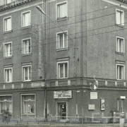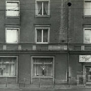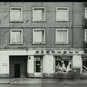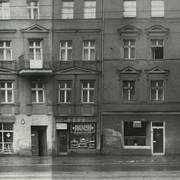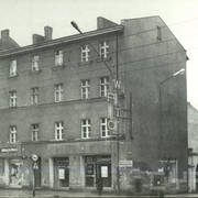 Kamienica nr 64 w zachodniej pierzei ul. Głogowskiej ze sklepem z materiałami na narożniku (o pow. 53 mkw, należał do WPTO) i neonem sklepu na ścianie szczytowej