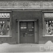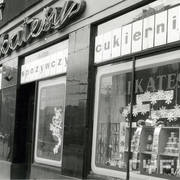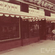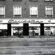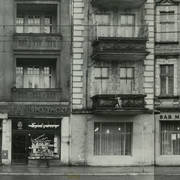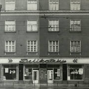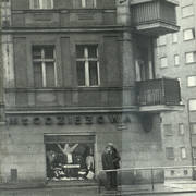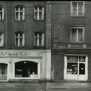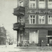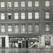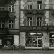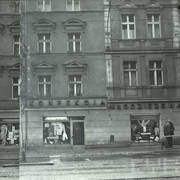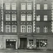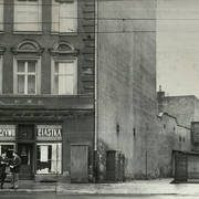 Budynek nr 55/57 we wschodniej pierzei ul. Głogowskiej z kawiarnią Pół Czarnej; po lewej stronie fragment kamienicy nr 53 ze sklepem rzeźnickim