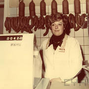 Kierowniczka sklepu mięsno-wędliniarskiego Społem PSS nr 1039 (po 1978 roku nr 334) przy ul. Głogowskiej 189
