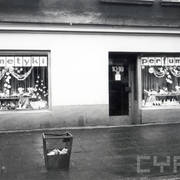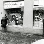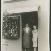 Tekla Dudek z ekspedientką przed sklepem obuwniczym Dudków przy ul. Głogowskiej 69 krótko przed II wojną światową