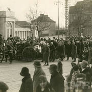Kondukt pogrzebowy prof. Ireneusza Wierzejewskiego przy Dworcu Zachodnim na ul. Marszałka Focha (dzisiaj ul. Głogowska)