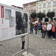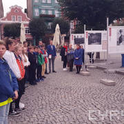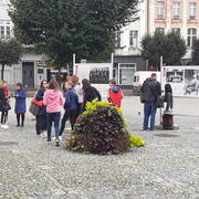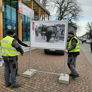 Wystawa plenerowa akcja: powstanie wzdłuż ul. 27 Grudnia w Poznaniu, tablica poświęcona Ludwikowi Gajsce, którą ktoś we wzruszającym geście udekorował biało-czerwonymi różami28.01.2019