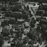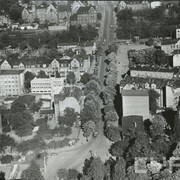 Ulice Sienkiewicza, Mickiewicza i Zwierzyniecka na Jeżycach z lotu ptaka, u góry skrzyżowanie ulic Zwierzynieckiej i Roosevelta (dzisiaj rondo Kaponiera)