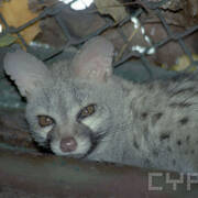 Żeneta zwyczajna (Genetta genetta) prawdopodobnie w Nowym Zoo w Poznaniu
