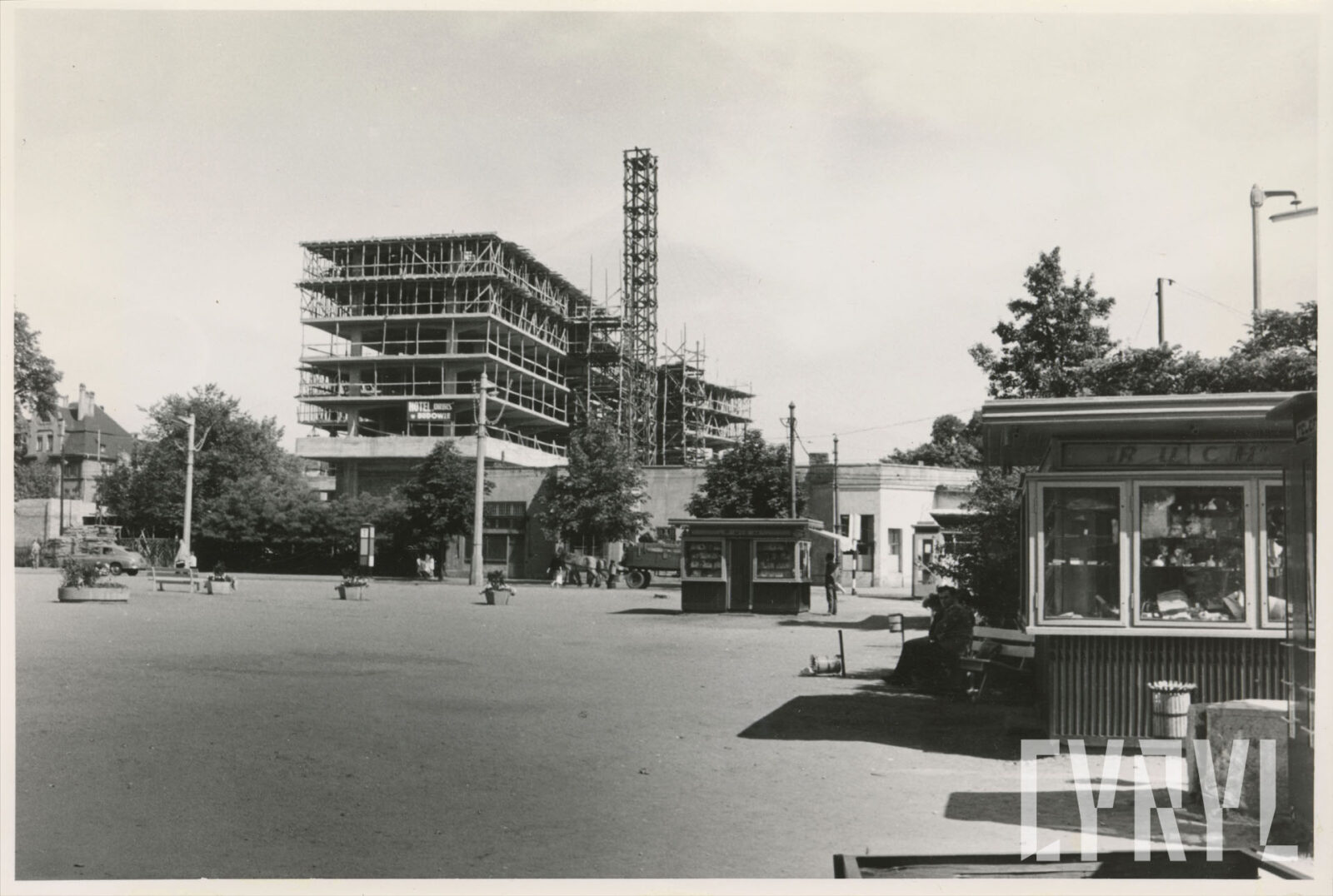 Budowa hotelu Merkury, na pierwszym planie plac przed kinem Bałtyk, dalej ul. Zwierzyniecka