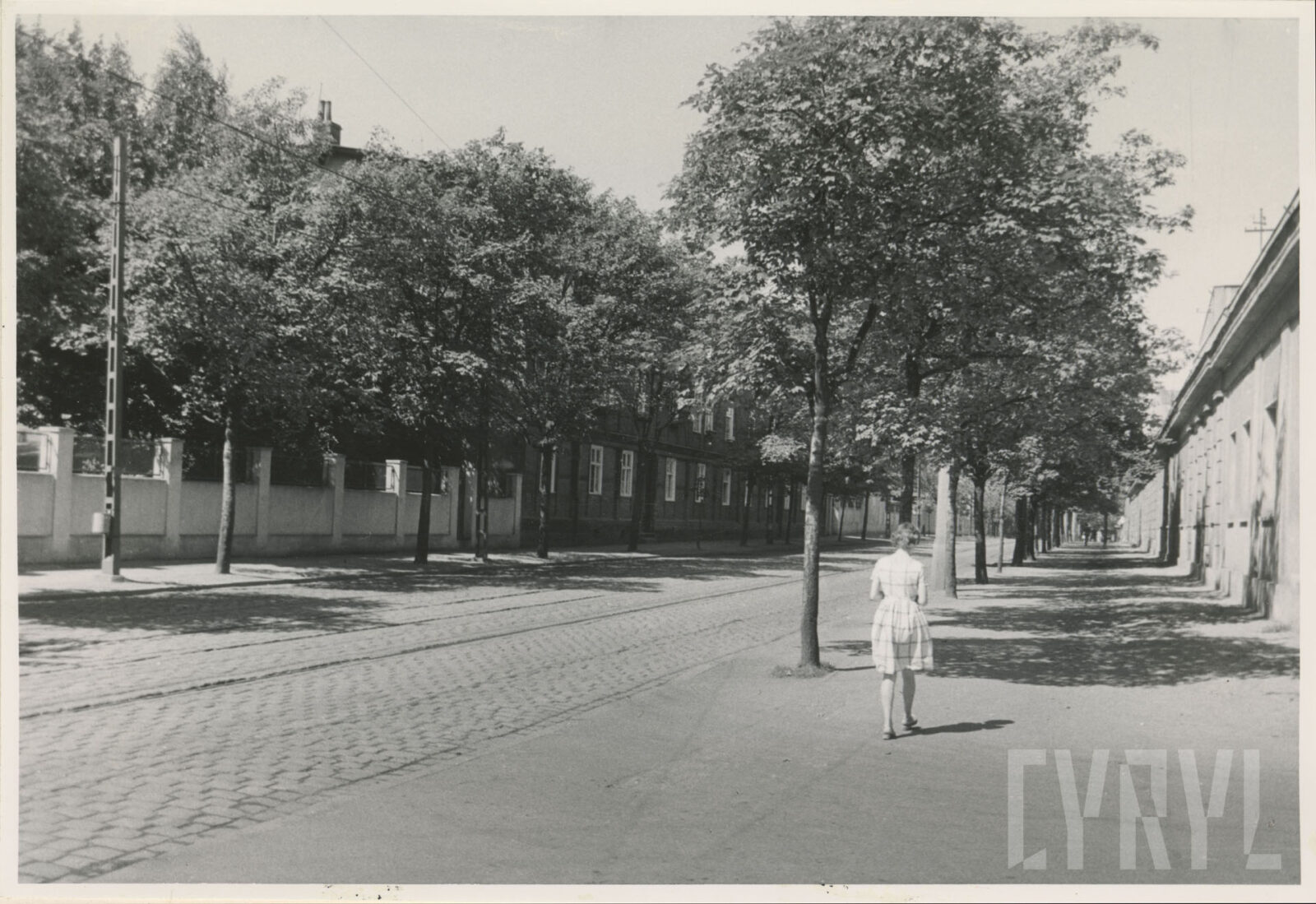 Ulica Zwierzyniecka, po prawej zabudowania zajezdni tramwajowej