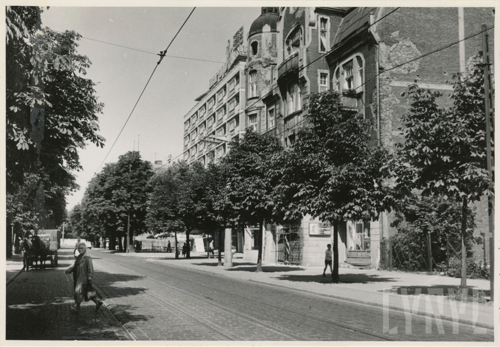 Ulica Zwierzyniecka, po lewej kamienica na narożniku ul. Zeylanda