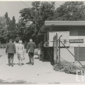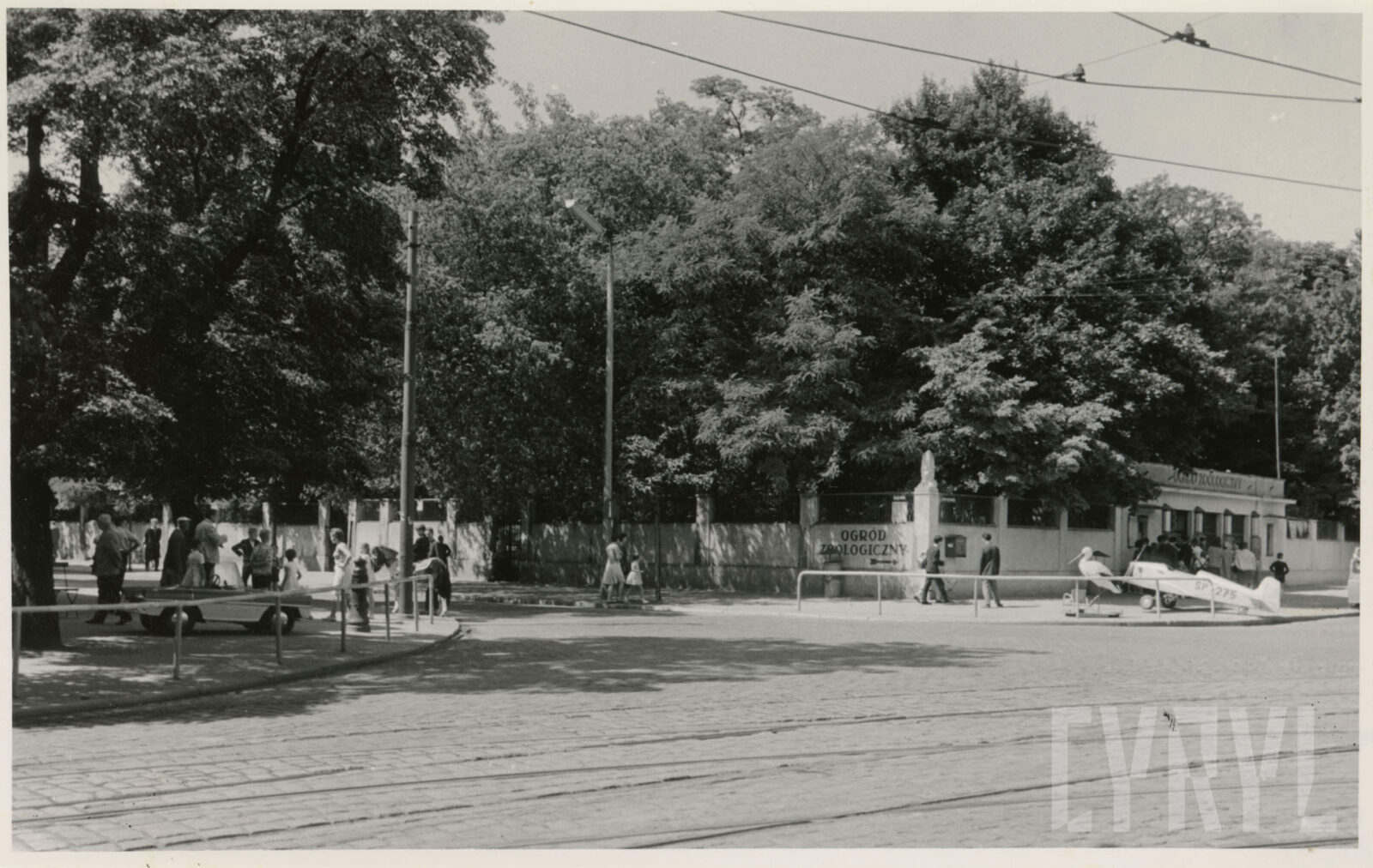 Ulica Zwierzyniecka, w głębi ogrodzenie i wejście główne do Ogrodu Zoologicznego
