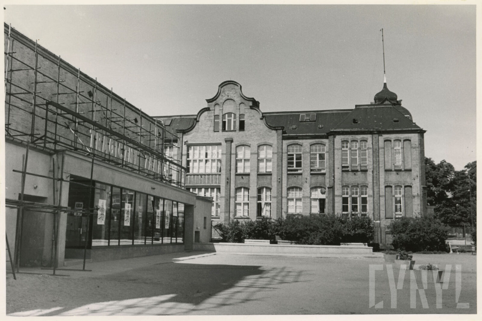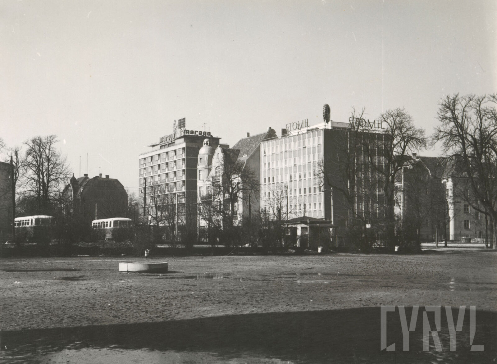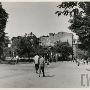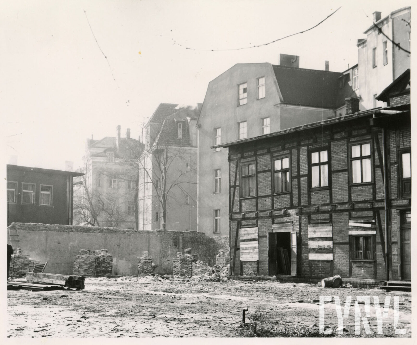 Kino Bałtyk (z lewej), drukarnia Concordia (w środku; dzisiaj Concordia Design) i szachulcowy budynek z czasów rejonów fortecznych w XIX wieku przy ul. Zwierzynieckiej07.1962