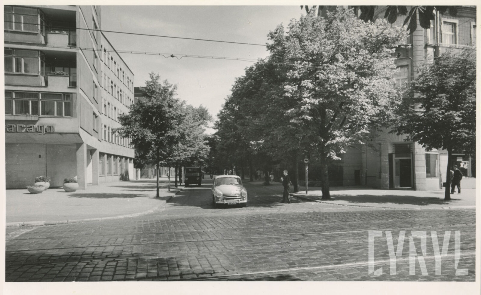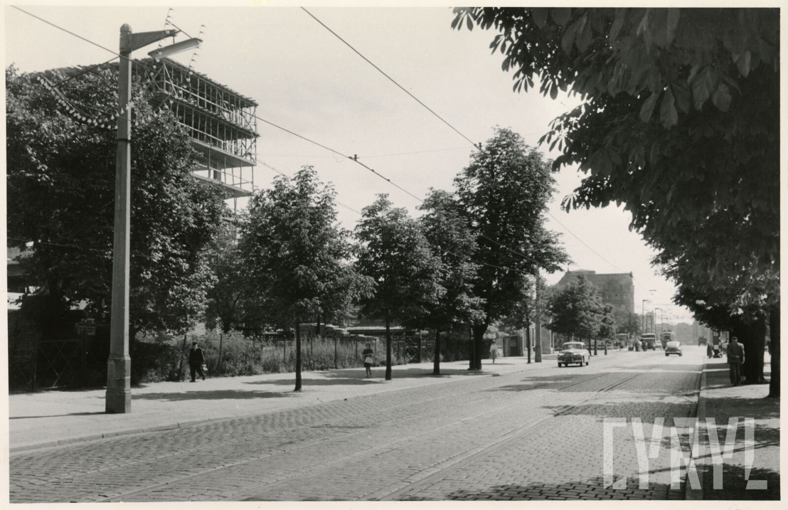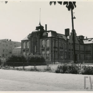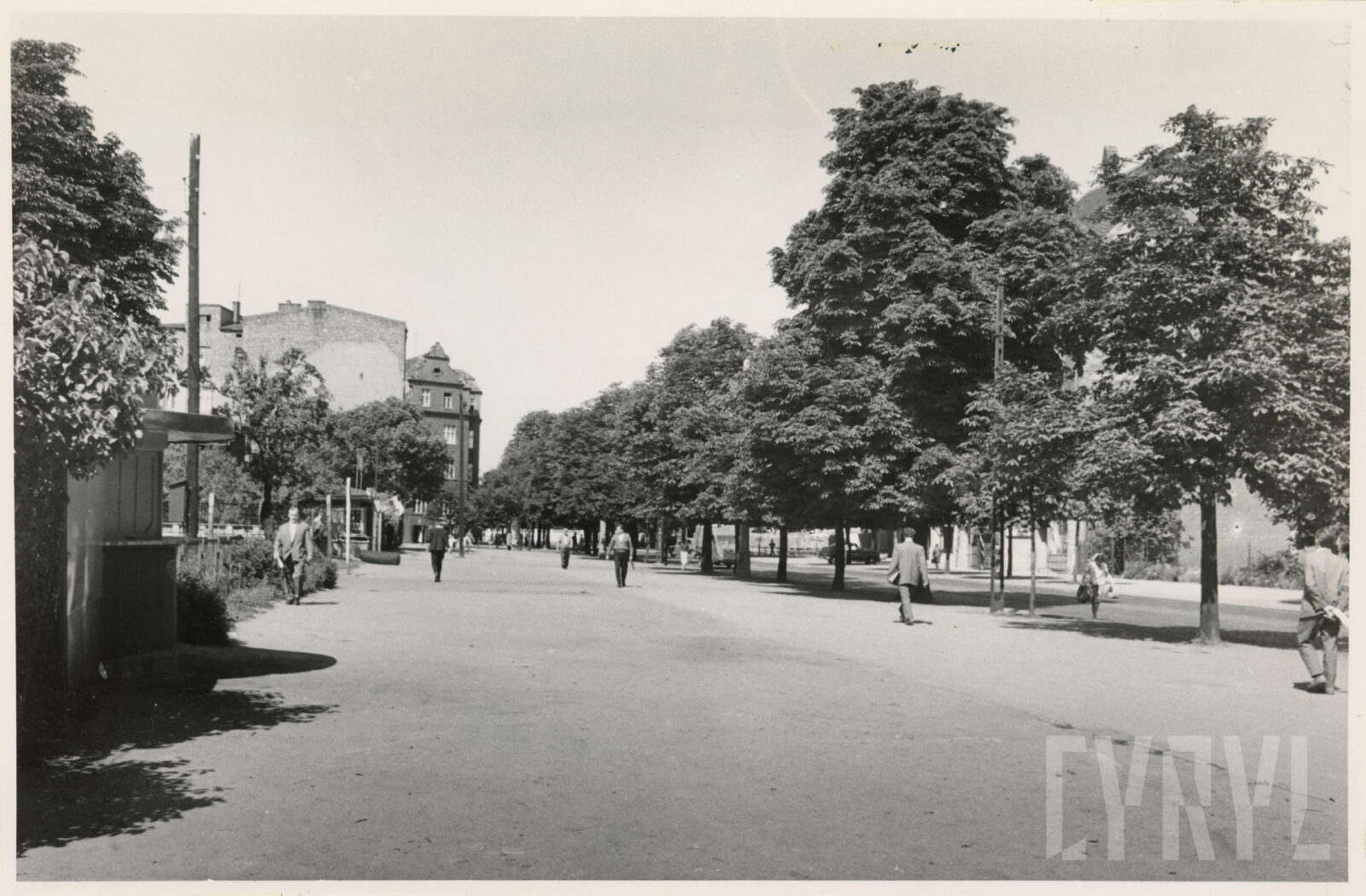 Kino Bałtyk (z lewej), drukarnia Concordia (w środku; dzisiaj Concordia Design) i szachulcowy budynek z czasów rejonów fortecznych w XIX wieku przy ul. Zwierzynieckiej07.1962