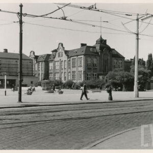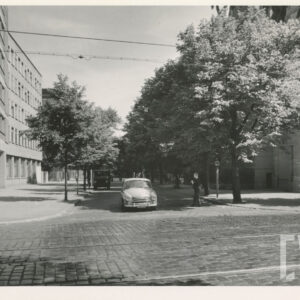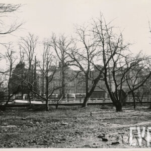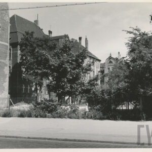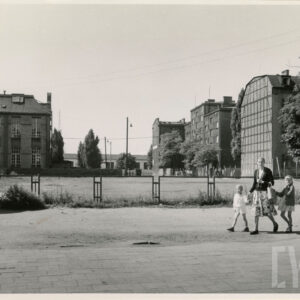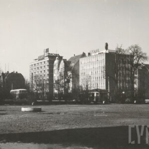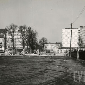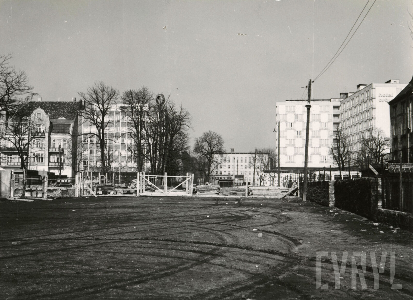 Pusty plac między ulicami Zwierzyniecką i Grunwaldzką (dzisiaj w tym miejscu stoi Dom Studencki Jowita Uniwersytetu im. A. Mickiewicza), w głębi budynek dawnej drukarni Concordia1965