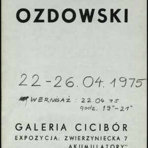 Rzeźby Tomasza Ozdowskiego zaprezentowane na wystawie zorganizowanej przez Galerię Cicibór w Domu Studenckim Jowita tzw. Akumulatorach22.04.1975–26.04.1975