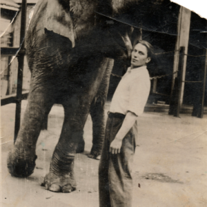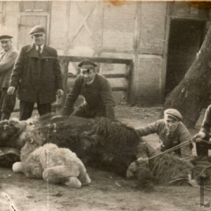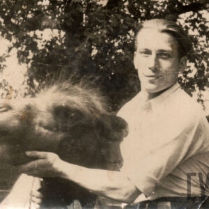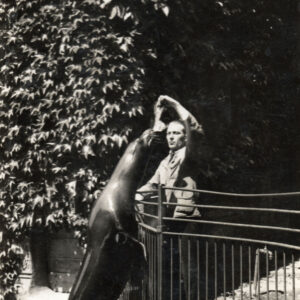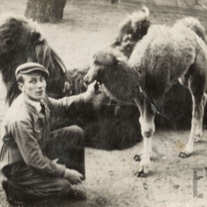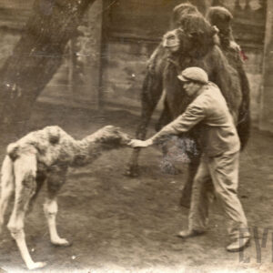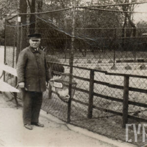 Struś afrykański na wybiegu przy wybudowanej w stylu orientalnym starej strusiarni w Ogrodzie Zoologicznym przy ul. Zwierzynieckiej (dzisiaj Stare Zoo, pawilon został rozebrany)1911