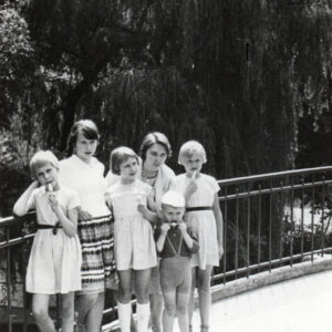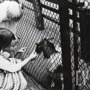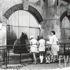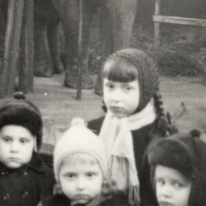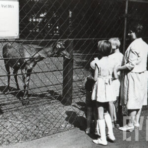 Elżbieta i Ewa Szubert, Maria Kaiser (później Skowrońska), Iwona Kaiser (później Sandach) i Piotr Kaiser w Zoo przy ul. Zwierzynieckiej (dzisiaj Stare Zoo)1962