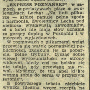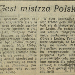30.04.1983–01.05.1983Artykuł Gest Mistrza Polski z informacją o przekazaniu przez drużynę Lecha Poznań zysków z meczu Pucharu Polski z Lechią Zielona Góra (zwycięstwo Lecha 0:4) na zakup sprzętu piłkarskiego dla juniorów zielonogórskiego klubu