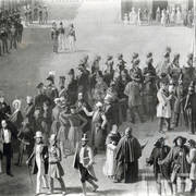 Antepedium (zakrycie, zasłona) ołtarza głównego z polichromowaną, płaskorzeźbioną apoteozą patrona świątyni w poreformackim kościele św. Kazimierza1942