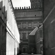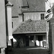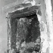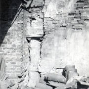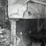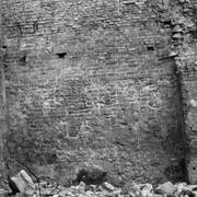 Wschodnia ściana kamienicy pisarza miejskiego przy Starym Rynku, zamurowane wnęki w miejscu styku z południową ścianą szczytową domków budniczych08.1950