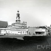 Elewacja wschodnia dawnego klasztoru Reformatów (obecnie Ośrodek Szkolno-Wychowawczy dla Dzieci Niesłyszących) i kościoła św. Kazimierza (obecnie parafia polskokatolicka)10.1957