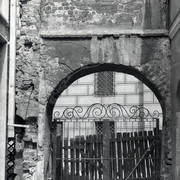 Prace regotyzacyjne przy kościele św. Małgorzaty od strony południowo-zachodniej, na pierwszym planie barokowa brama prowadząca na teren przykościelny11.1972