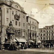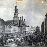 Stary Rynek w 1871 roku na litografii Roberta Geisslera w: "Album miasta Poznania...", w budynku po prawej stronie słynna cukiernia Antoniego Pfitznera, w południowym skrzydle Odwachu sklep z wódkami i piwem
