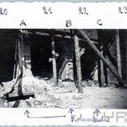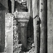 Głowica kolumienki w narożniku południowym domku budniczego nr 11 na Starym Rynku odkryta w czasie badań architektonicznych po zniszczeniach wojennych (na górnym, niewidocznym wśród gruzów szlaku głowicy data 1535)28.08.1949