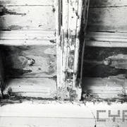 Fragment elewacji zachodniej dawnego klasztoru Reformatów w miejscu połączenia z kościołem św. Kazimierza (pod odpadającymi tynkami widoczne fragmenty dawnej polichromii)10.1957