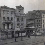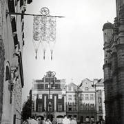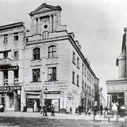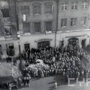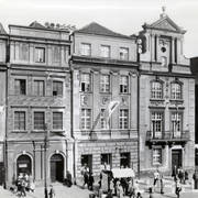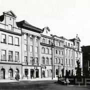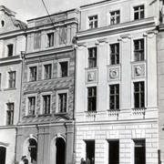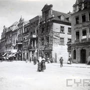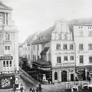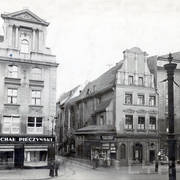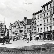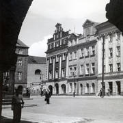 Ratusz w widoku z narożnika Breitestrasse (ul. Wielka) i Fremdengasse (Uliczka Obcych, czyli obecna ul. Żydowska) w czasie okupacji niemieckiej1939–1944